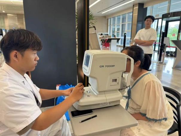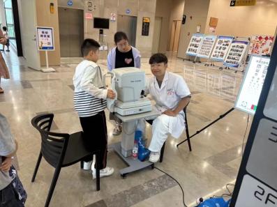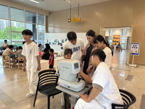 活動(dòng)中,眼科醫(yī)院工作人員為孩子們提供了視力檢測(cè)、電腦驗(yàn)光檢測(cè)等公益服務(wù),并依據(jù)檢測(cè)結(jié)果給出個(gè)性化的視力保護(hù)建議。從“眼球結(jié)構(gòu)的奧秘”“近視形成的原因”到“科學(xué)防控三法寶(戶外運(yùn)動(dòng)+良好用眼習(xí)慣+定期檢查)”,通過(guò)生動(dòng)案例讓復(fù)雜的護(hù)眼知識(shí)變得簡(jiǎn)單易懂。