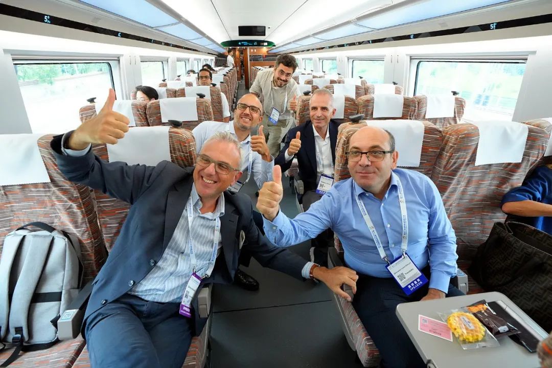 在實(shí)車(chē)試乘環(huán)節(jié),各國(guó)代表拿到紀(jì)念車(chē)票后,乘坐CR400BF - GS復(fù)興號(hào)智能動(dòng)車(chē)組列車(chē),在國(guó)家鐵道試驗(yàn)中心環(huán)行線(xiàn)50余種不同類(lèi)型的線(xiàn)橋隧試驗(yàn)場(chǎng)景中行駛,感受中國(guó)現(xiàn)代化高速鐵路裝備帶來(lái)的舒適便捷旅途。
