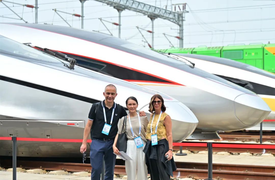 在室外實(shí)車(chē)展示區(qū),CR450AF、CR450BF、CR400AF - S、CR400BF - S、CR220J等復(fù)興號(hào)家族主要成員一同亮相,從多個(gè)維度展現(xiàn)了中國(guó)高鐵的創(chuàng)新發(fā)展成就。