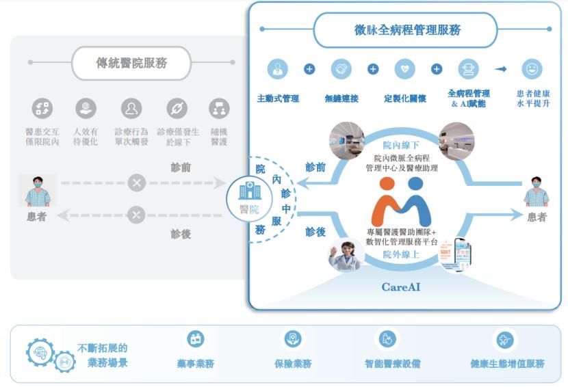 公司利用技術(shù)、數(shù)據(jù)及CareAI,開(kāi)發(fā)了涵蓋超1000種疾病的標(biāo)準(zhǔn)化健康管理方案,與國(guó)內(nèi)157家醫(yī)院合作,服務(wù)內(nèi)容包括治療安排與預(yù)約、用藥管理等。