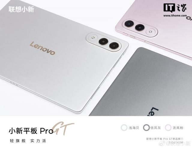 此外,聯(lián)想小新官方微博上周公布了小新AI平板Pro GT的外觀,新品沿用小立邊設(shè)計,提供淺海貝、信風(fēng)灰、流嵐粉三款配色,后置豎向排列的鏡頭模組(預(yù)計為雙攝 + 閃光燈),同時配有手寫筆配件,支持杜比音效等。
