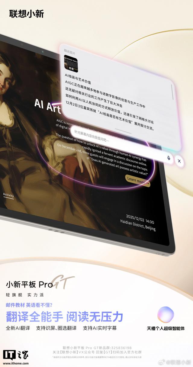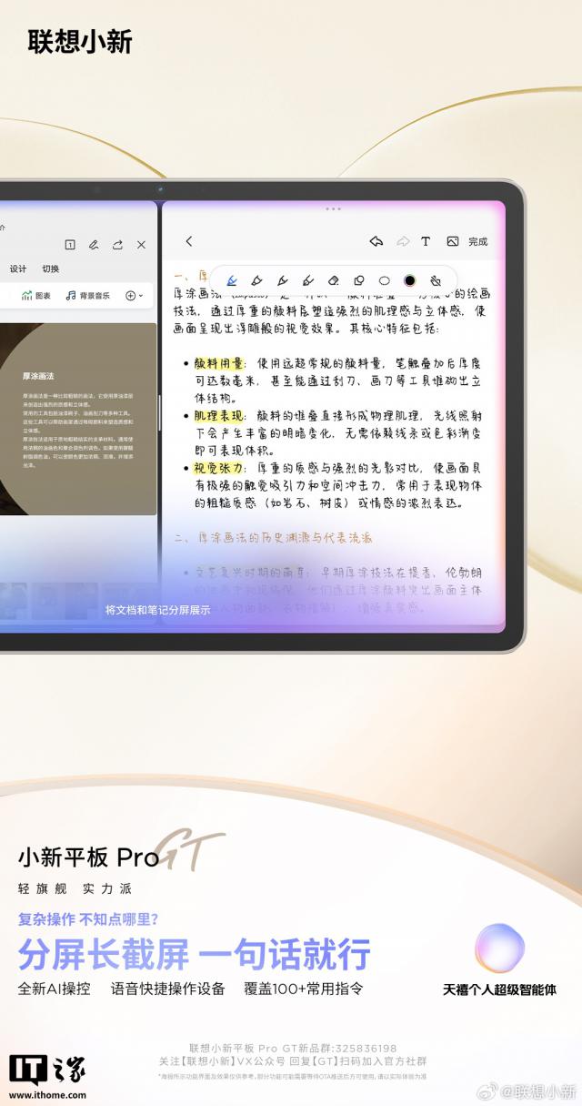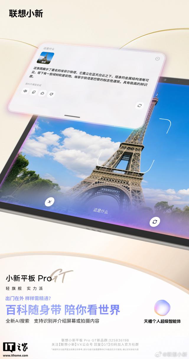 IT之家7月10日消息,聯(lián)想小新昨日繼續(xù)對小新平板Pro GT進(jìn)行預(yù)熱,該新品首發(fā)搭載移動版全新天禧個人超級智能體,號稱“開啟平板AI交互新時代”。