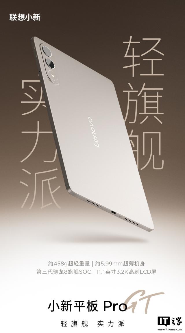 據(jù)IT之家此前報道,聯(lián)想小新平板Pro GT已確認(rèn)搭載第三代驍龍8旗艦SOC、配備11.1英寸3.2K高刷LCD屏幕。新款平板還采用輕量化設(shè)計,擁有約458g“超輕重量”和約5.99mm“超薄機身”。