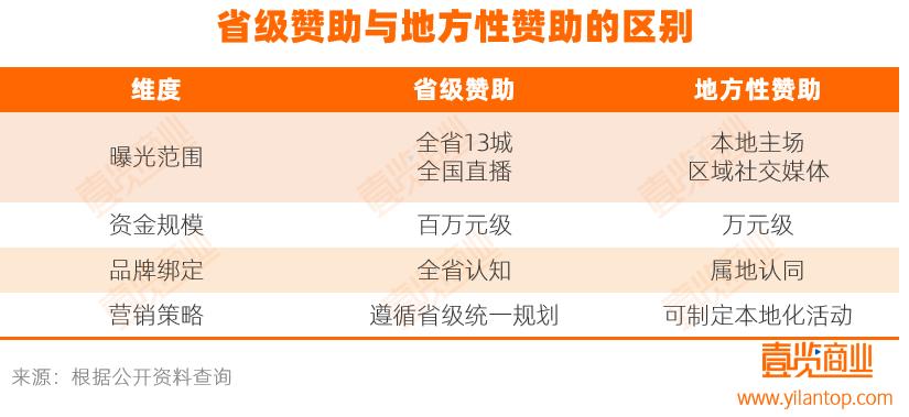 同時,各賽區(qū)在省級贊助體系之外有自主招商權(quán)。贊助層級和權(quán)益與省級類似,贊助名額有限,各賽區(qū)自行招商需向聯(lián)賽組委會市場開發(fā)部報備,獲得授權(quán)后才能簽訂商務條款。