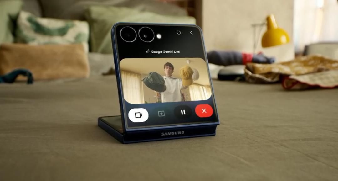 小折疊屏Galaxy Z Flip7在AI體驗(yàn)上有個(gè)相對獨(dú)特的功能,用戶可把手機(jī)折疊后放置在桌面上,通過后置攝像頭進(jìn)行自拍,詢問AI穿搭建議。