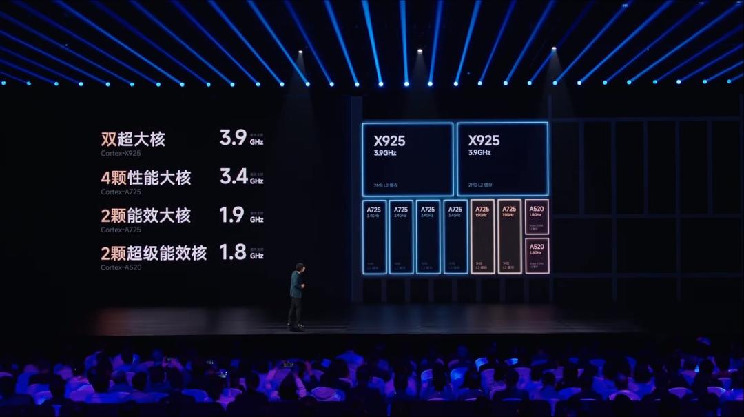 從官方參數(shù)看,這顆芯片與小米玄戒O1同樣是十核心四叢集架構(gòu),超大核最高頻率為3.3GHz,與小米的3.9GHz有較大差距,其余三組CPU核的最高頻率分別為2.74GHz、2.36GHz和1.8GHz。