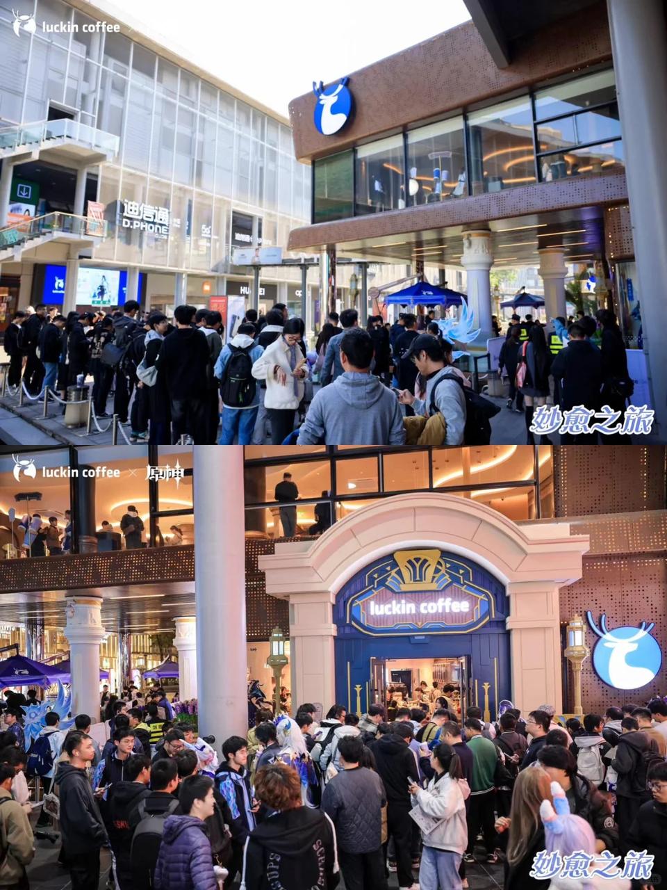 比如瑞幸和原神、古茗與盜墓筆記的聯(lián)動,都不局限于聯(lián)名產品和周邊。它們打造了沉浸式的主題快閃店,融入大量IP相關元素,消費者可以在其中拍照打卡。一杯奶茶的購買過程,由此變成了一場微型的文化藝術體驗,拓展了用戶體驗的邊界。