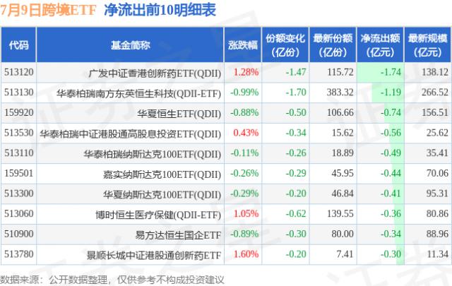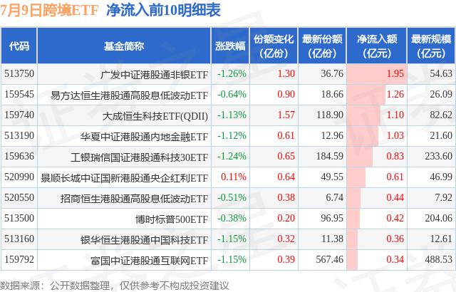 7月9日跨境ETF資金流向情況:凈流入2.24億元