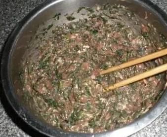 把掃帚苗在沸水鍋中焯熟,撈出過涼水,攥干切碎備用;肉餡放入盆中,依次加入鹽、雞精、生姜粉、生抽、料酒、香油攪拌均勻,按順時針方向攪拌至粘稠(肉餡干就放點水),再放入掃帚苗碎末、打個雞蛋,攪拌均勻即成。