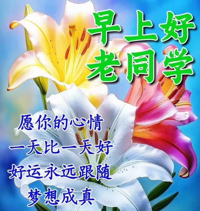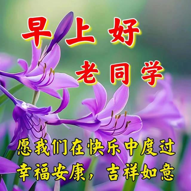 早安,一束陽(yáng)光照在身,祝你天天都開(kāi)心,財(cái)神家中去,夢(mèng)想變成真,今天中大獎(jiǎng),明天去上任,朋友的祝福全都是真心。親愛(ài)的老同學(xué),早安!