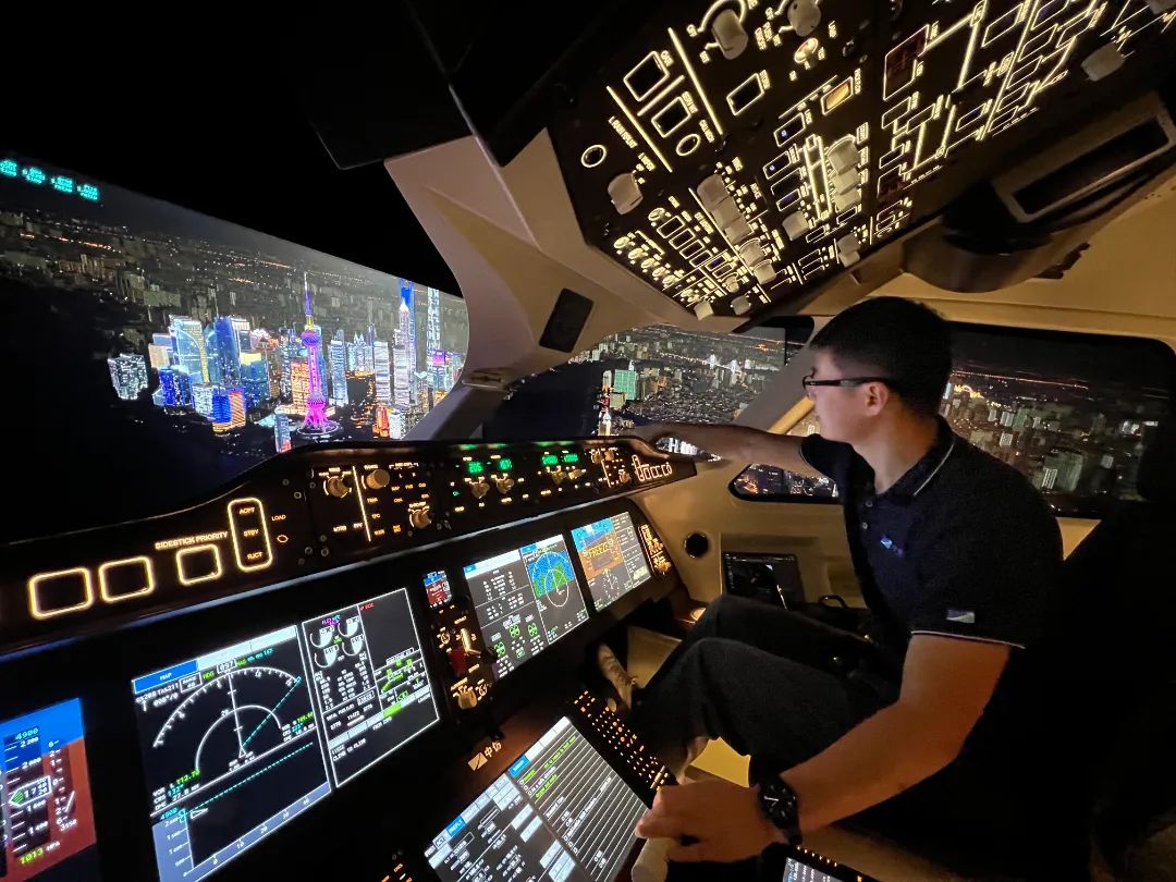 硬件革新是本次升級的另一大亮點(diǎn)。整個(gè)C919飛行模擬器座艙從原先的部分觸摸屏全面升級為高度仿真的物理按鍵、旋鈕和開關(guān),視景顯示首次采用拼接屏,使畫面色彩和連續(xù)性效果明顯增強(qiáng)。中仿研發(fā)部經(jīng)理武克廷向記者介紹:“這大幅提升了操作的反饋感和真實(shí)感?!边@種設(shè)計(jì)嚴(yán)格參照真實(shí)C919駕駛艙的操控邏輯與尺寸,包括按真實(shí)尺寸優(yōu)化的腳踏,讓使用者獲得近乎真實(shí)的飛行駕駛艙環(huán)境互動(dòng)體驗(yàn),增強(qiáng)了模擬飛行的沉浸感。