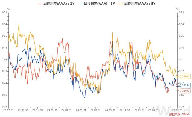 5. 近期城投債(AAA)各期限利差走勢及數(shù)據(jù)