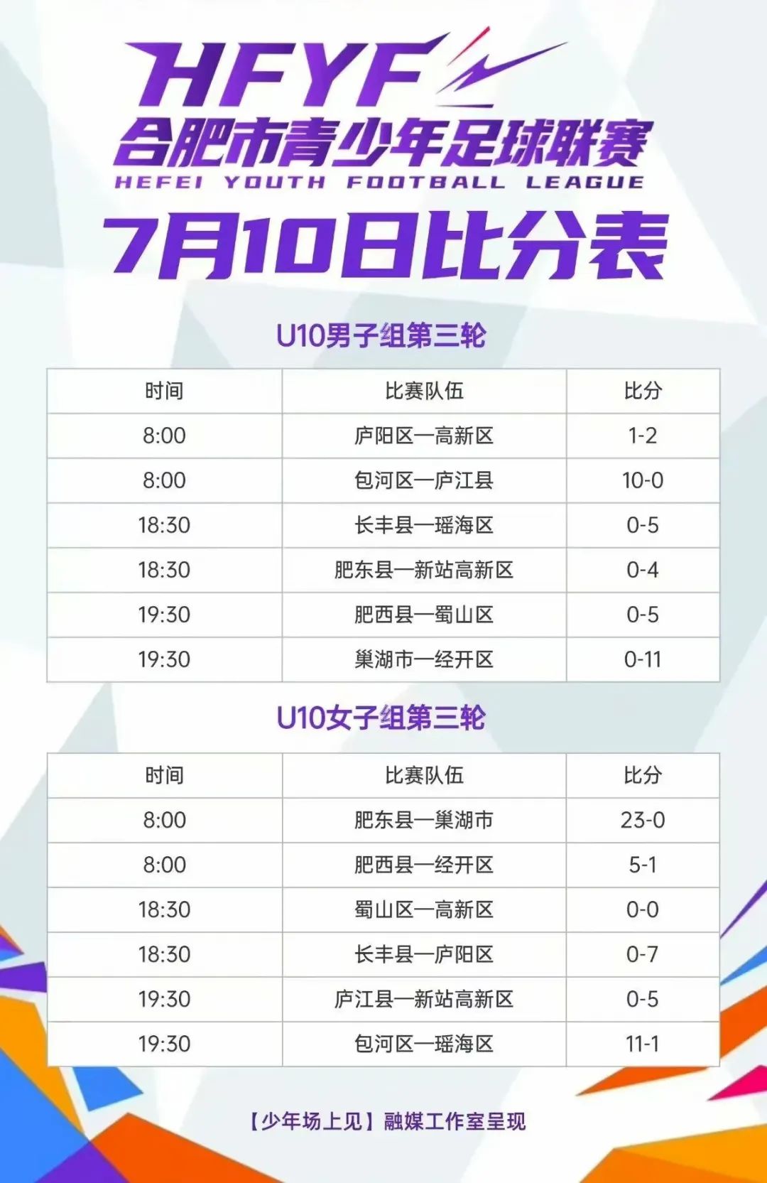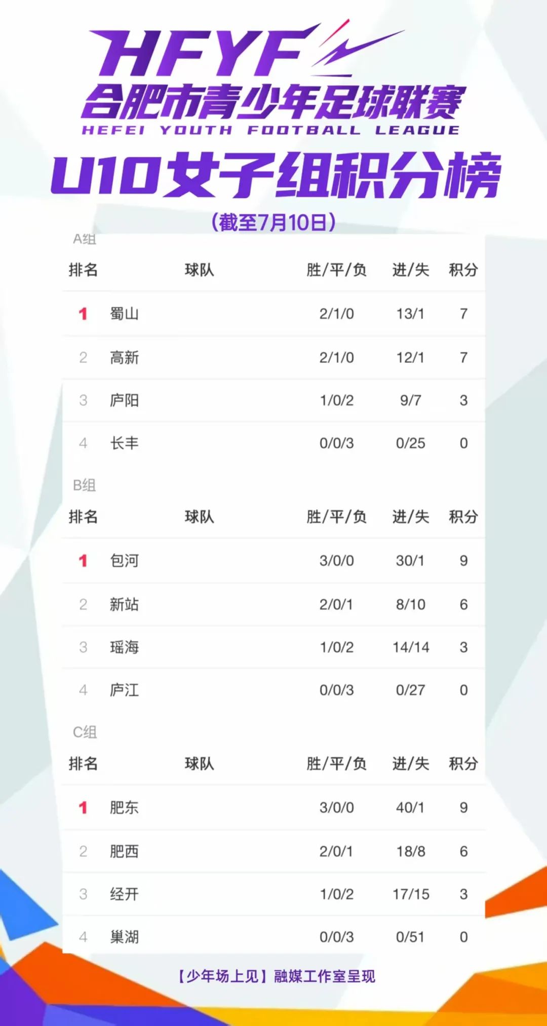 合肥市青少年足球聯(lián)賽7月10日戰(zhàn)況及積分榜出爐