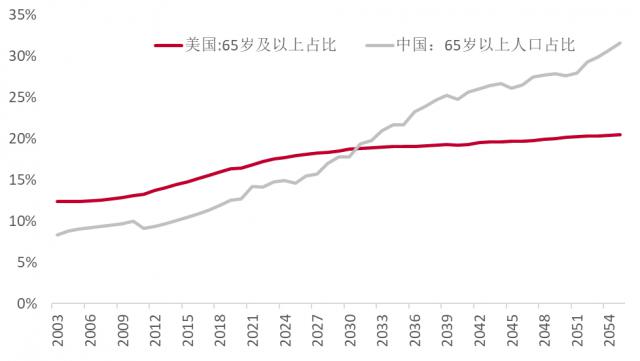 中美人口老齡化率趨勢比較