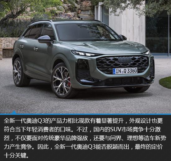 奧迪Q3作為奧迪旗下的入門級(jí)緊湊型SUV,自問世以來,憑借時(shí)尚外觀和出色動(dòng)態(tài)表現(xiàn),收獲了不錯(cuò)的銷量。如今,全新一代奧迪Q3正式亮相,它基于大眾集團(tuán)最新的MQB Evo平臺(tái)打造,在設(shè)計(jì)語(yǔ)言、座艙體驗(yàn)和動(dòng)力組合等方面都進(jìn)行了全面革新,實(shí)現(xiàn)了脫胎換骨般的進(jìn)化。