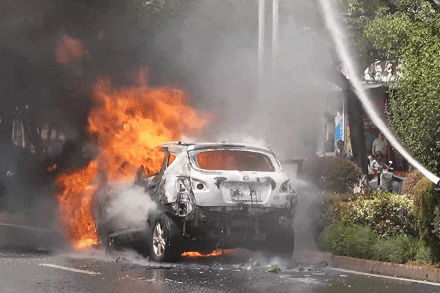 消防員到達(dá)現(xiàn)場(chǎng)后,發(fā)現(xiàn)一輛汽車(chē)停在路邊,正處于猛烈燃燒階段,現(xiàn)場(chǎng)濃煙彌漫。