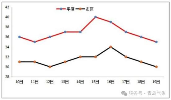 未來十天青島市區(qū)及平度逐日最高氣溫預(yù)報(單位:℃)。另外,據(jù)目前資料分析,15日前后青島有陣雨或雷雨,對高溫天氣緩解作用不大。