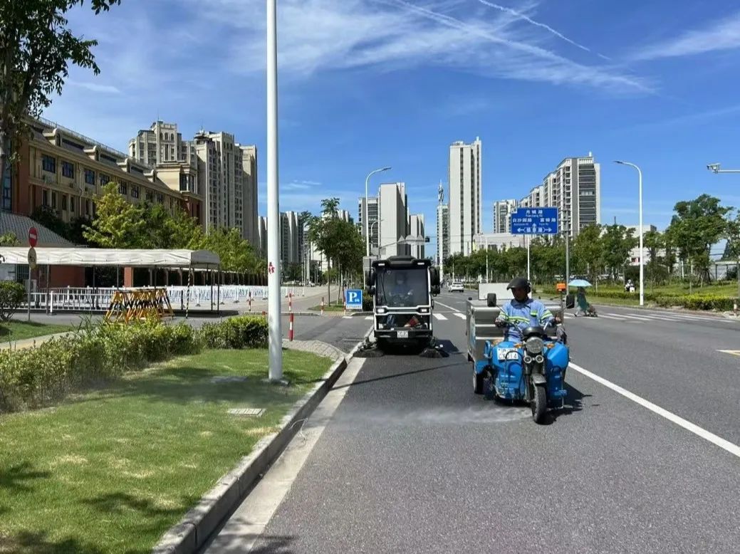 推行“機(jī)械為主、人工為輔”的作業(yè)模式,增加洗掃車、高壓沖洗車等機(jī)械化設(shè)備的接力作業(yè),對(duì)主次干道進(jìn)行“掃、灑、沖、洗”多機(jī)聯(lián)合作業(yè),保持路面濕潤(rùn),降低地表溫度,做到“清掃不松懈,質(zhì)量不降低”。
