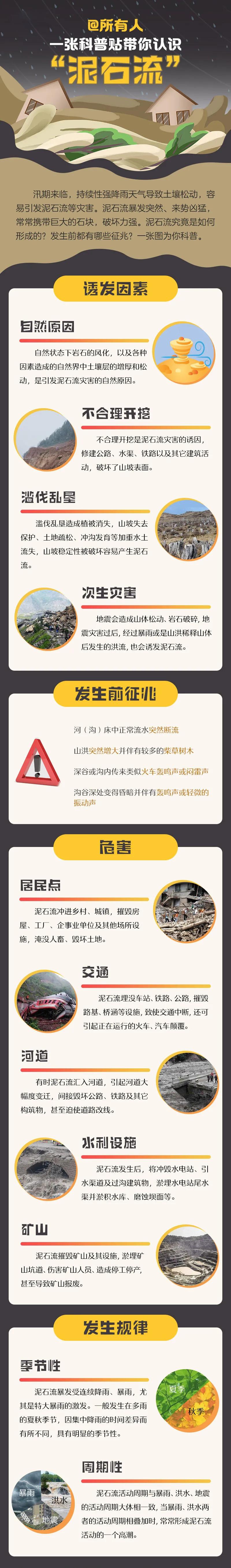 泥石流暴發(fā)突然、來(lái)勢(shì)兇猛,常攜帶巨大石塊,破壞力強(qiáng)。那么,泥石流究竟是如何形成的?發(fā)生前有哪些征兆?會(huì)造成哪些危害?