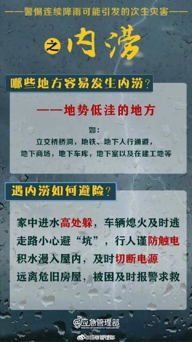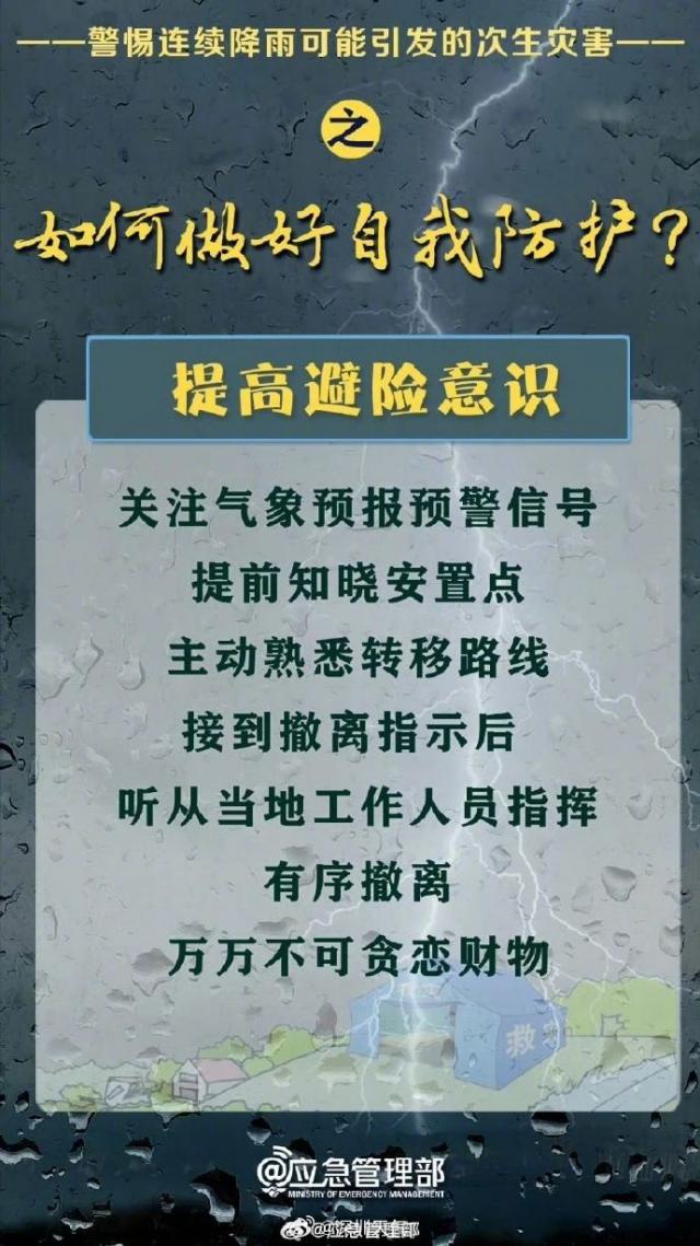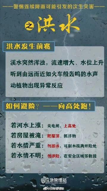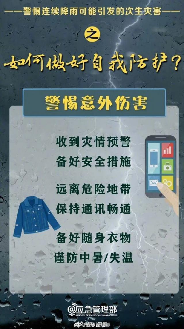 1.注意防范強降水造成的積澇、滑坡、中小河流水位暴漲等次生災害。
