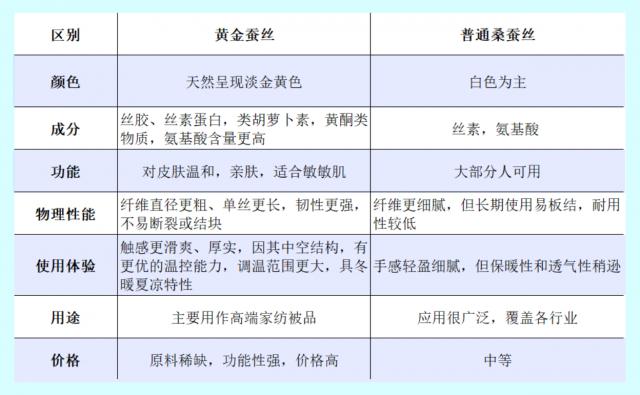 很多人蓋過蠶絲被,但黃金蠶絲被可能沒蓋過。那黃金蠶絲和普通桑蠶絲有啥區(qū)別呢?其實黃金蠶絲也屬于桑蠶絲,都來自桑蠶,不過它是特定品種桑蠶吐的絲,在顏色、成分、性能和環(huán)保性上和普通桑蠶絲不同。這就是市面上黃金蠶絲被價格不低的原因。