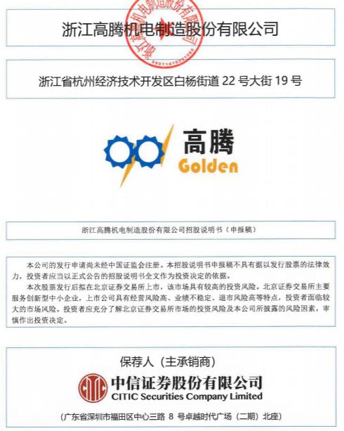 瑞財經(jīng)王敏 6月30日,浙江高騰機電制造股份有限公司(以下簡稱“高騰機電”)北交所IPO獲受理,保薦機構(gòu)為中信證券,保薦代表人為何康、王一真,會計師事務(wù)所為中匯。