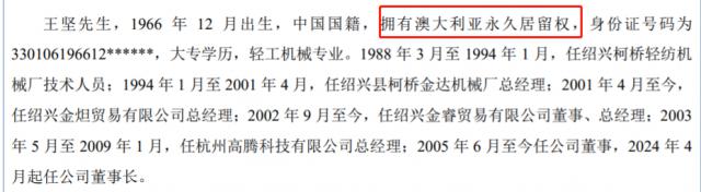 王堅,1966年12月出生,中國國籍,擁有澳大利亞永久居留權(quán),大專學歷,輕工機械專業(yè)。他曾在多家企業(yè)任職,1988年3月至1994年1月,任紹興柯橋輕紡機械廠技術(shù)人員;1994年1月至2001年4月,任紹興縣柯橋金達機械廠總經(jīng)理;2001年4月至今,任紹興金炟貿(mào)易有限公司總經(jīng)理;2002年9月至今,任紹興金睿貿(mào)易有限公司董事、總經(jīng)理;2003年5月至2009年1月,任杭州高騰科技有限公司總經(jīng)理;2005年6月至今任公司董事,2024年4月起任公司董事長。