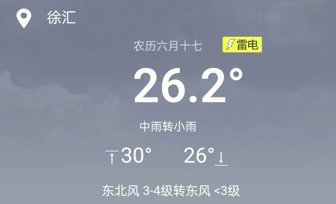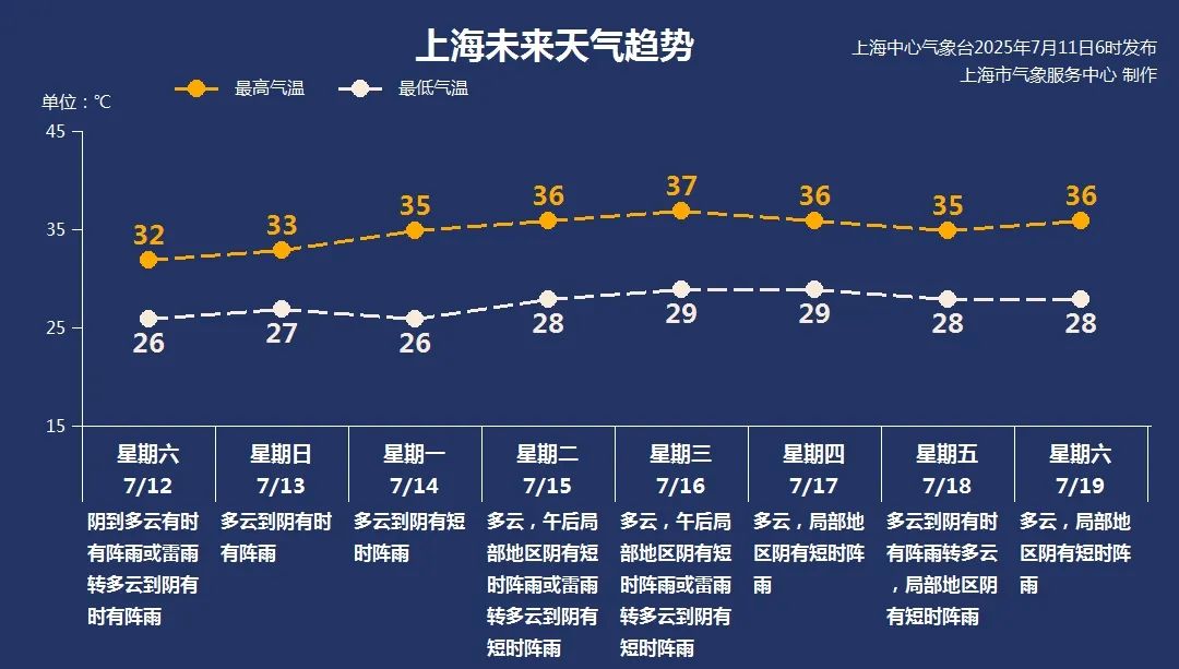 7月12日(周六):陰到多云有時(shí)有陣雨或雷雨轉(zhuǎn)多云到陰有時(shí)有陣雨,26~32℃