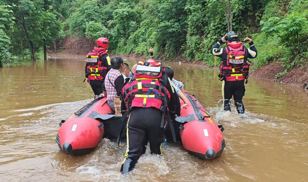 救援人員利用橡皮艇、救生衣等專(zhuān)業(yè)裝備,涉水進(jìn)入受困區(qū)域,安全有序地將被困群眾轉(zhuǎn)移至安全地帶,成功轉(zhuǎn)移安置被困群眾百余人。