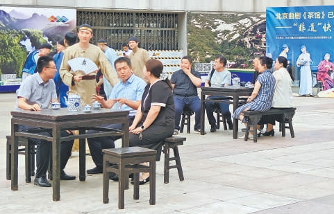 “喲,這位爺,您里邊請(qǐng)!”昨天下午,在北京北站下沉廣場(chǎng)上,一群身著戲服的曲劇演員登場(chǎng),熱情邀請(qǐng)過(guò)往行人到一旁的“茶館”品茶。旅客們被演員帶入沉浸式表演中,現(xiàn)場(chǎng)不時(shí)傳來(lái)笑聲和喝彩聲。原來(lái),這是北京市重點(diǎn)站區(qū)管理委員會(huì)北站辦與北京市曲劇團(tuán)聯(lián)合策劃的“黨建引領(lǐng)·京韻暢行”快閃活動(dòng)。此次快閃活動(dòng)通過(guò)沉浸式表演,把北京曲劇《茶館》片段融入到了旅客和市民的出行場(chǎng)景中。