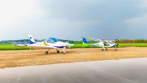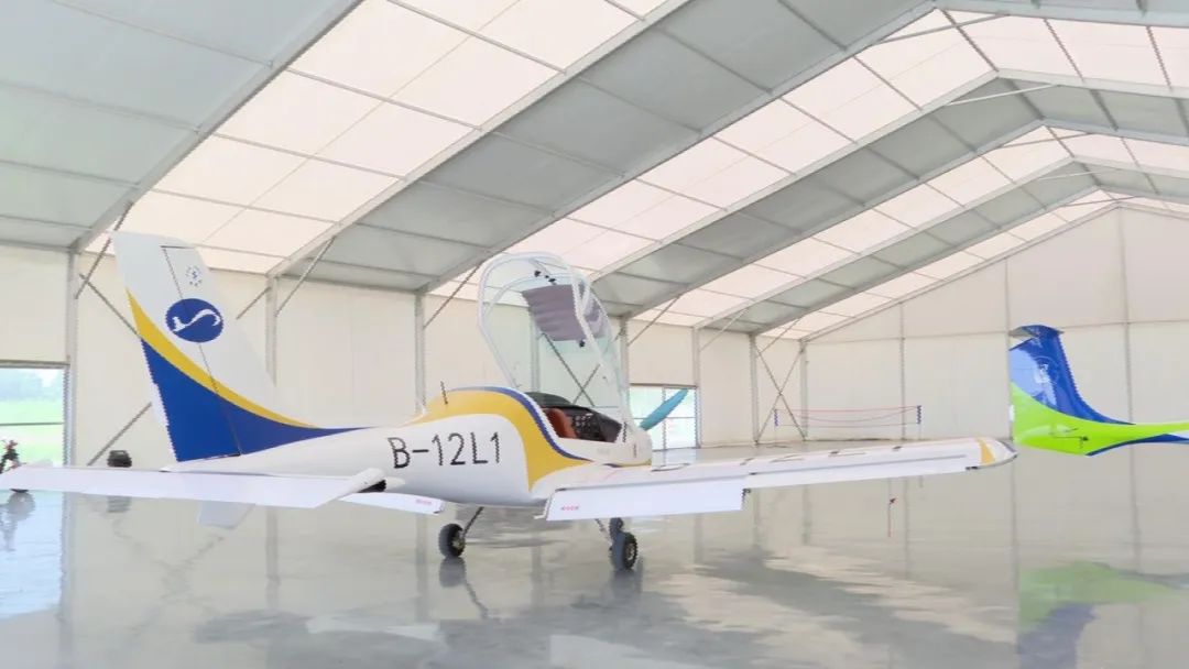 走進金牛鎮(zhèn)大翱飛行營地,一座巨大機庫首先映入眼簾,三架國產(chǎn)電動飛機格外引人注目。