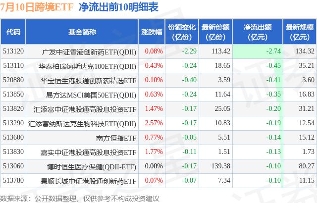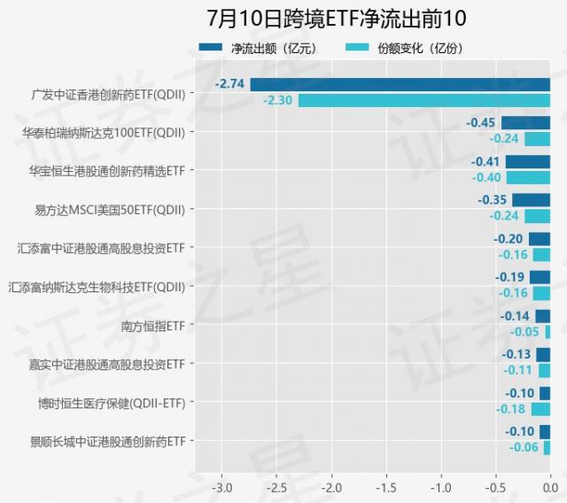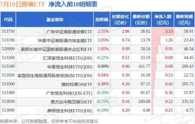 7月10日跨境ETF資金流向情況:凈流入4.4億元