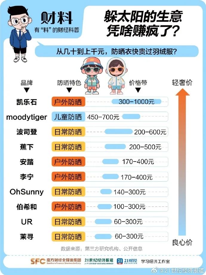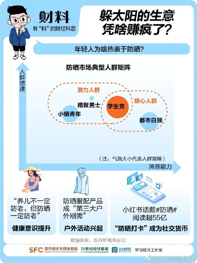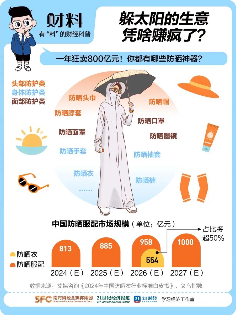 年輕人撐起了“防曬生意”,變身“防曬特種兵”!從學(xué)生黨到打工人,出門秒變行走的“蠶寶寶”,直接將防曬服配市場“卷”成千億賽道。2024年,我國防曬服配市場規(guī)模突破800億元,預(yù)計(jì)2026年將達(dá)958億元,其中防曬衣占比超50%。