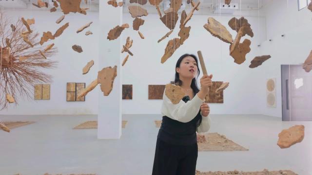 基地創(chuàng)始人鄧亞鳴介紹,這里致力于打造集藝術(shù)展覽、文化交流于一體的鄉(xiāng)村文化綜合體,目標(biāo)是‘讓藝術(shù)在田野間生長(zhǎng)’,為鄉(xiāng)村旅游增添新活力?;貎?nèi)的香地藝術(shù)中心正在舉辦宋陳的《壤 · 茗》主題展,傳達(dá)著對(duì)土地、茶葉和人文的思考。姜欣怡沉浸在現(xiàn)代藝術(shù)氛圍中,與創(chuàng)作者交流,聆聽(tīng)背后的故事。