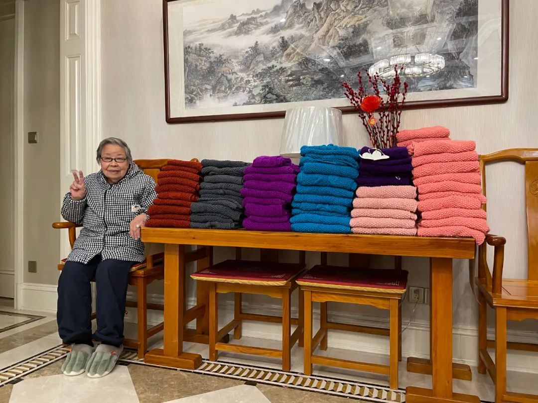 從2018年起,這對夫妻通過二女兒就職的公司進行捐贈,為改善貧困地區(qū)人們的生活出一份力。后來,李佩珍想到一個表達心意的方式——為山區(qū)兒童和困境兒童親手編織圍巾。她堅持做這件事很多年,幾乎沒人知道。現(xiàn)在李佩珍年紀大了,行動不太方便,但每年編織100余條圍巾的“任務(wù)”她一直記著,從未落下??椧粭l圍巾從起針到收尾要花她兩三天時間。夫妻倆會在每條圍巾上配一張小卡片,寫上對孩子們的祝福。
