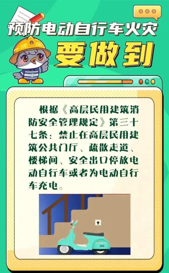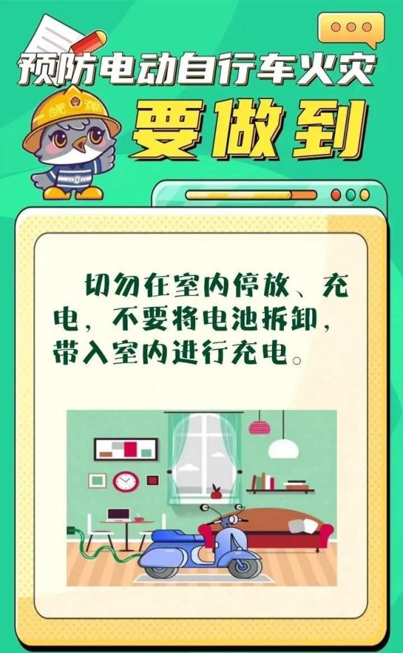 為了您和他人的生命安全,請不要讓電動自行車進樓入戶停放、充電,不要盲目改裝,同時要加強日常的自查自檢。