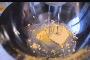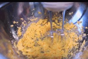 2. 黃油加熱融化,放入面粉,繼續(xù)攪拌 。