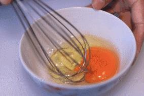 1. 將白糖與低筋面粉混合備用,雞蛋攪拌均勻備用。