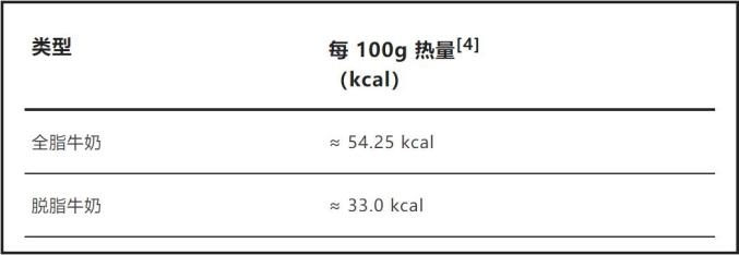 實(shí)際上,全脂牛奶和脫脂牛奶的熱量相差不大,具體可看下圖:
