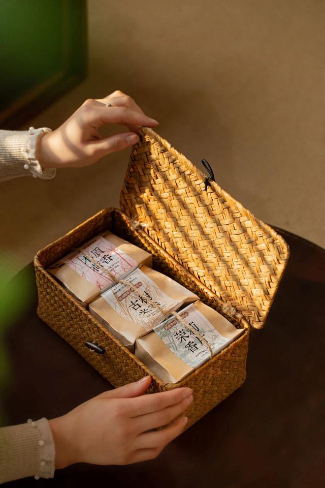 一次就能品嘗到四種口味,還贈(zèng)送草編禮盒,傳統(tǒng)又高級(jí),與六堡茶的氣質(zhì)相得益彰!