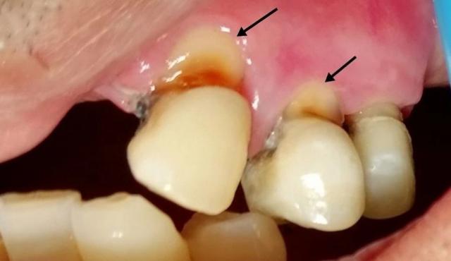 (牙齒被“鋸”出很深的溝。作者供圖)
