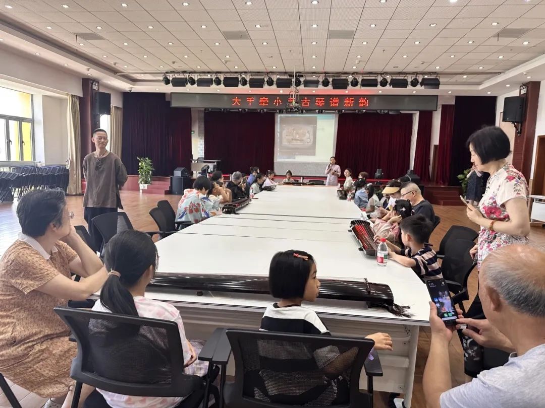 琴音響起,心境隨之寧靜。燕紫老師和周老師端坐琴前,指尖輕觸琴弦,經(jīng)典曲目《酒狂》的灑脫、《鷗鷺忘機(jī)》的悠遠(yuǎn),如清泉般流淌而出。那清越空靈的泛音、悠遠(yuǎn)綿長的按音,仿佛具有魔力,瞬間吸引了在場每個人的注意力。孩子們瞪大雙眼,滿臉驚嘆,古琴“余音繞梁”的獨(dú)特魅力,在他們心中悄然種下了興趣的種子。