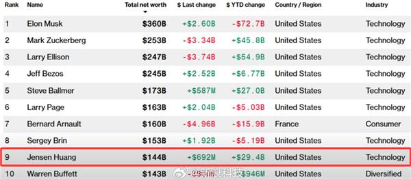 憑借這一出色成績(jī),黃仁勛個(gè)人身家達(dá)到1440億美元,超越了“股神”沃倫·巴菲特(1430億美元),在全球富豪榜上躍升至第九位。