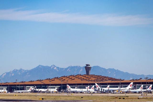 首都國(guó)際機(jī)場(chǎng)的飛機(jī)正有序運(yùn)行。