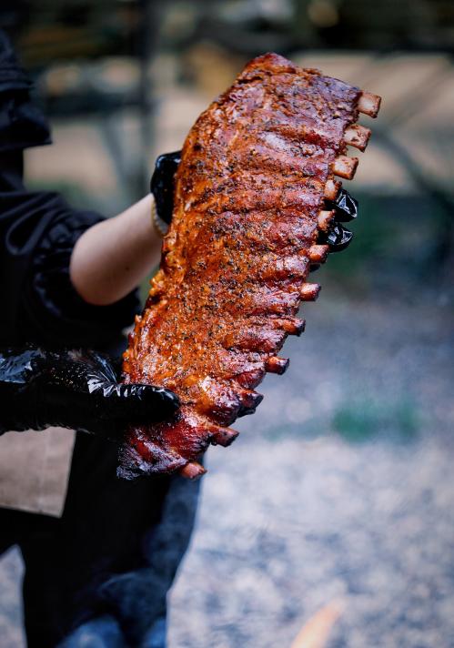 烤肉是這里的特色,采用果木炭火、低溫慢烤的方式。腌好的牛肉和鮮嫩的豬肋排,在低溫慢烤下形成誘人的焦糖色,還有清爽解膩的蔬菜沙拉、瀑布熔巖牛肉披薩,讓暑熱在美食中消散。