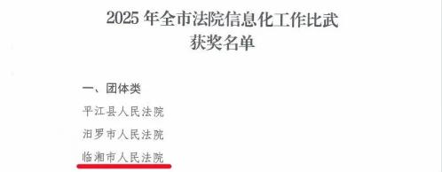 在2025年,臨湘市人民法院可謂是喜訊不斷,團體和個人都取得了優(yōu)異的成績,收獲了四項榮譽。