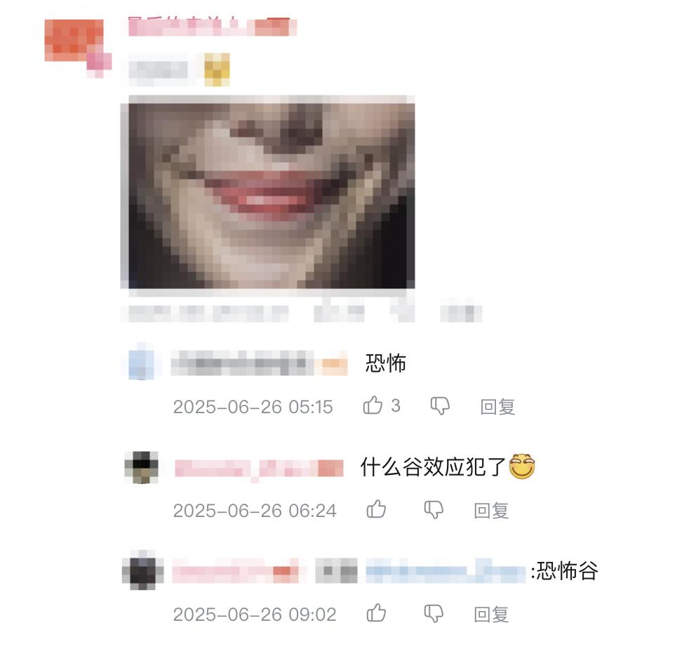 AI.TALK團(tuán)隊(duì)?wèi)c祝視頻部分畫面人物面部有詭異感,引發(fā)網(wǎng)友恐怖谷效應(yīng),但也能看出制作MV投入了更多精力和資源。普通人用AI創(chuàng)作歌曲,難投入大量精力優(yōu)化。