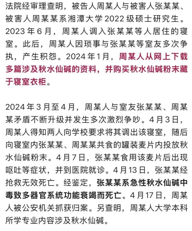 湘潭大學(xué)宿舍投毒案有了新的進(jìn)展。