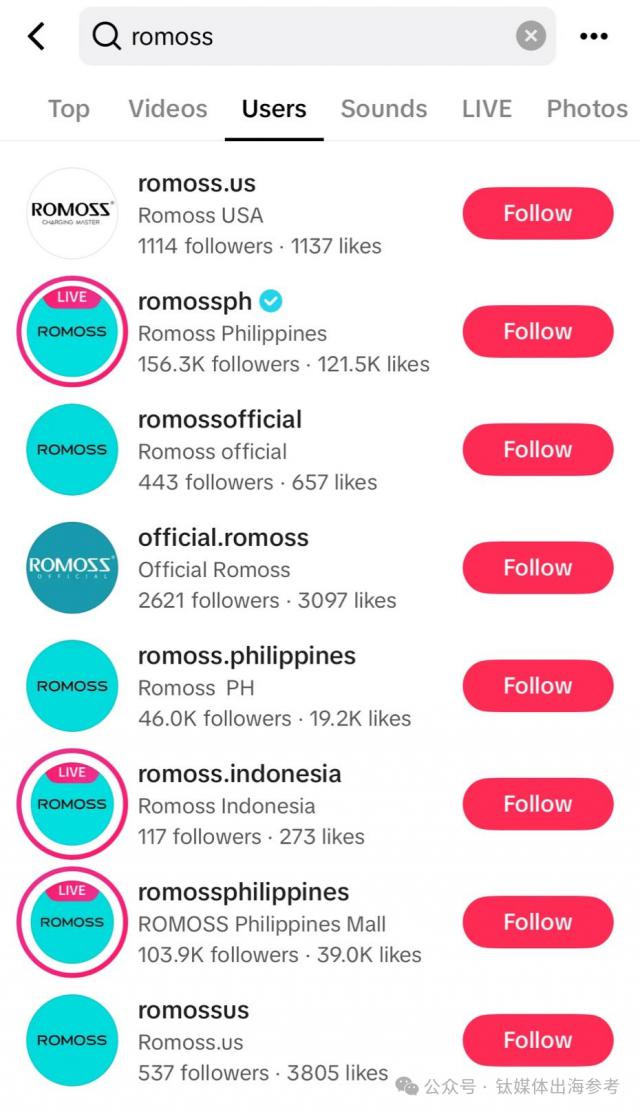 (TikTok搜索romoss「羅馬仕品牌英文名」的結(jié)果)