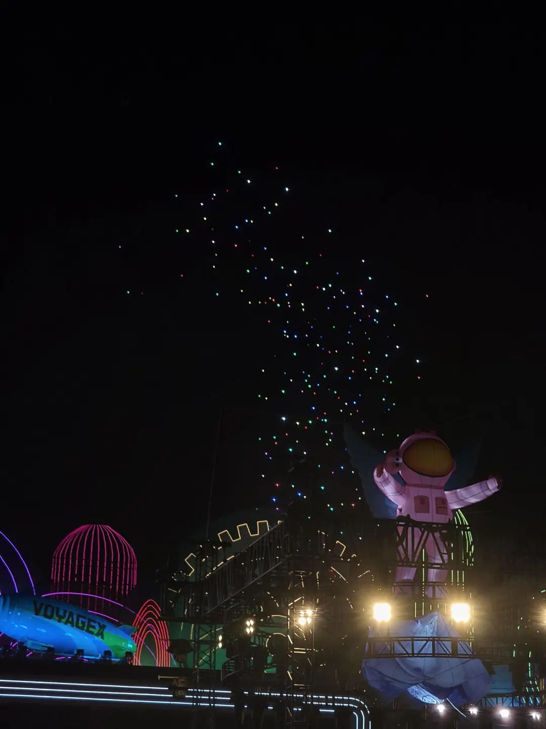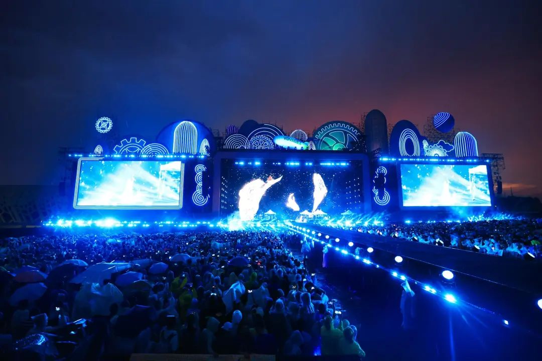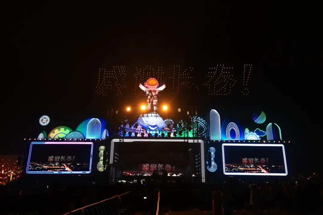 本次音樂節(jié)大膽創(chuàng)新,亮點頗多。演出最后,“動態(tài)星空共舞”的環(huán)節(jié)尤為震撼——數(shù)百架無人機飛上夜空,在夜空中精準編隊,變幻出流動的數(shù)字星河畫卷。這場360°沉浸式的“動態(tài)星空交響曲”,將前沿科技與藝術(shù)創(chuàng)意完美結(jié)合,打造出如夢似幻的視聽盛宴,成為觀眾離場時最深刻的記憶。